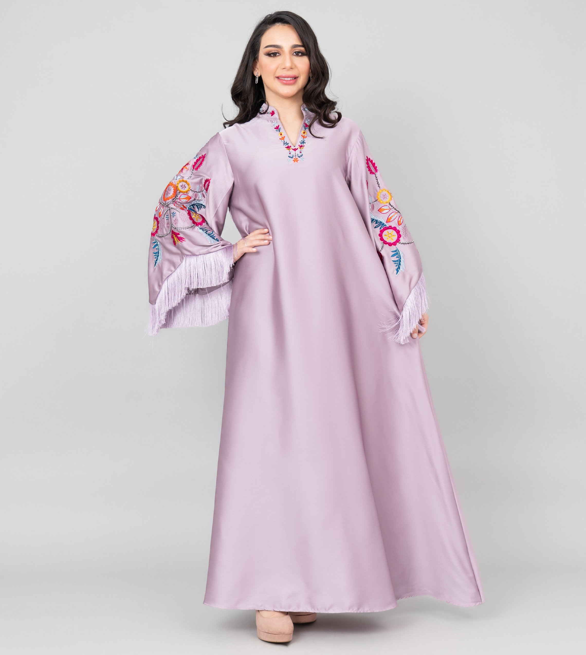 Shimmer Detail Sleeves Embroidered Jalabiya IK1018