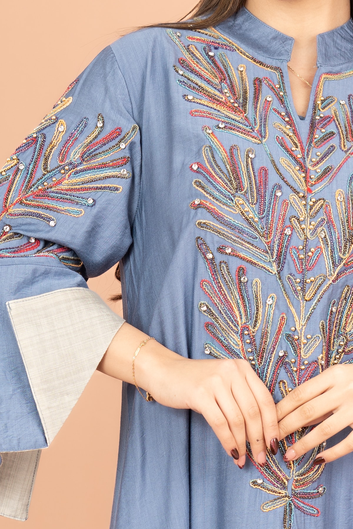 جلابية مطرزة ومرصعة كرستال IK4001 ازرق
